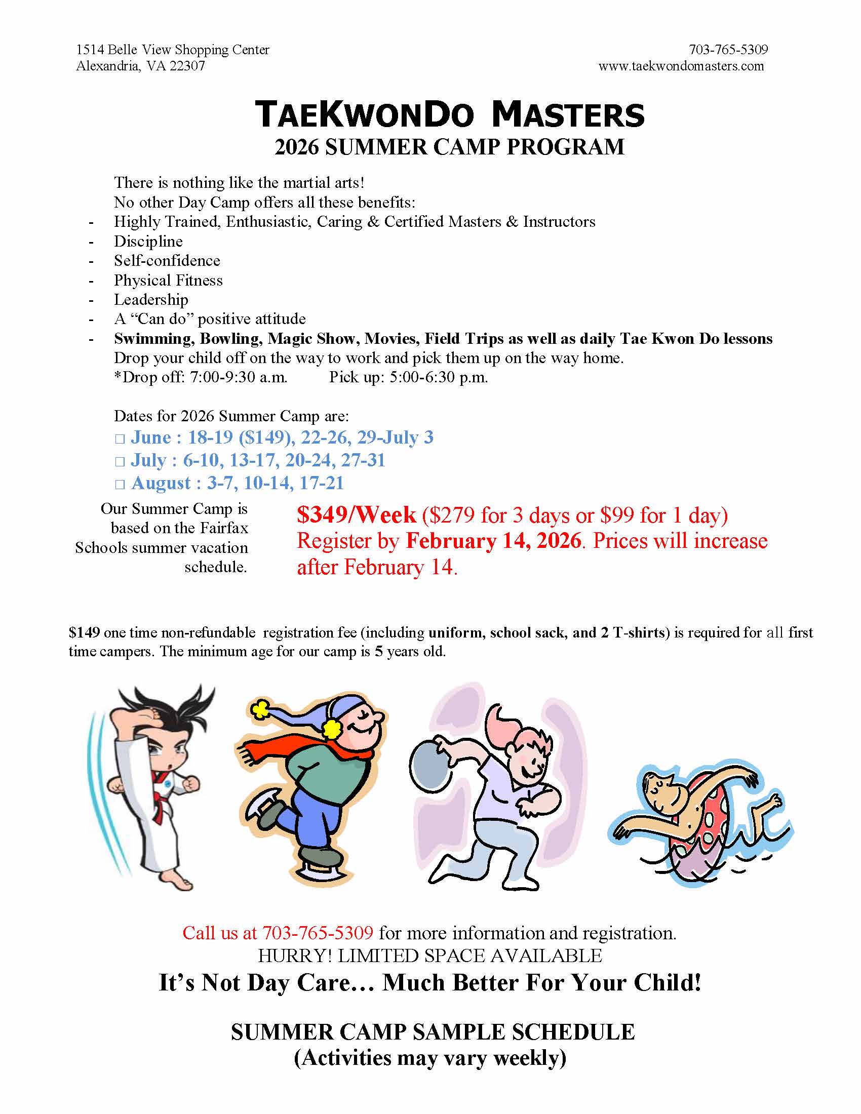 2:30 p.m. Learn Tae Kwon Do manners and customs 4:00 p.m. TKD Practice